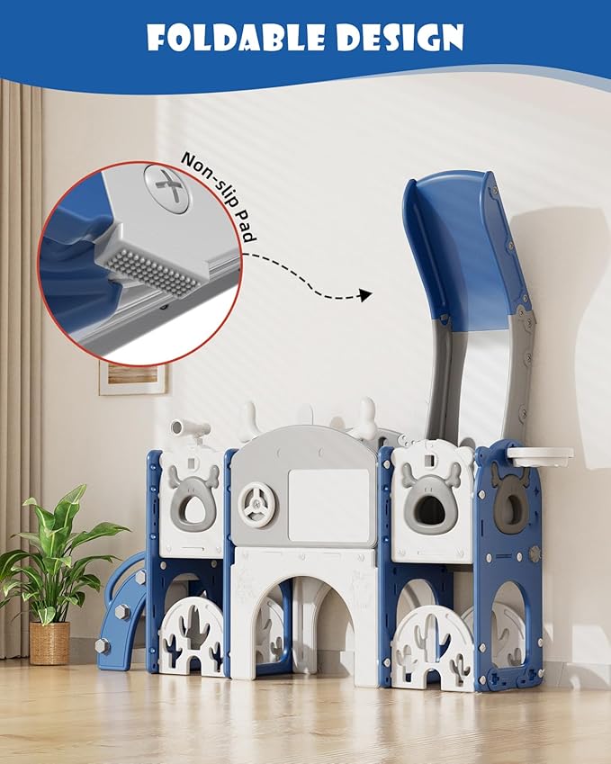 XJD 13 in 1 Toddler Slide Set, Kids Slide for Toddlers Age 1+, New Upgrade with Golf Set, Basketball Hoop, Drawing Board for Indoor Outdoor Playset,Toddler Playground (Blue Gley)