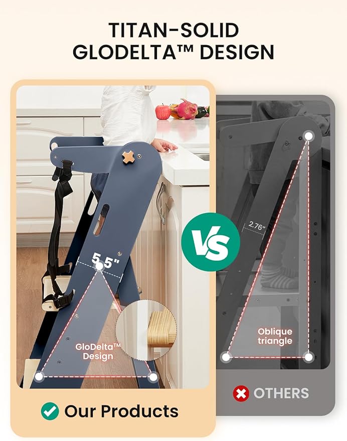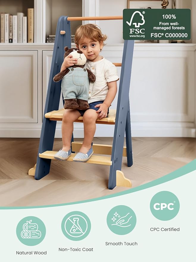 - Sturdy & Stable: Baby's independent exploration is as stable as a rock, no fear of falls even when active! The foldable toddler tower features widened side design with reinforced foot pads. Every edge is finely rounded to protect baby's hands from cuts, making growth safer and happier.