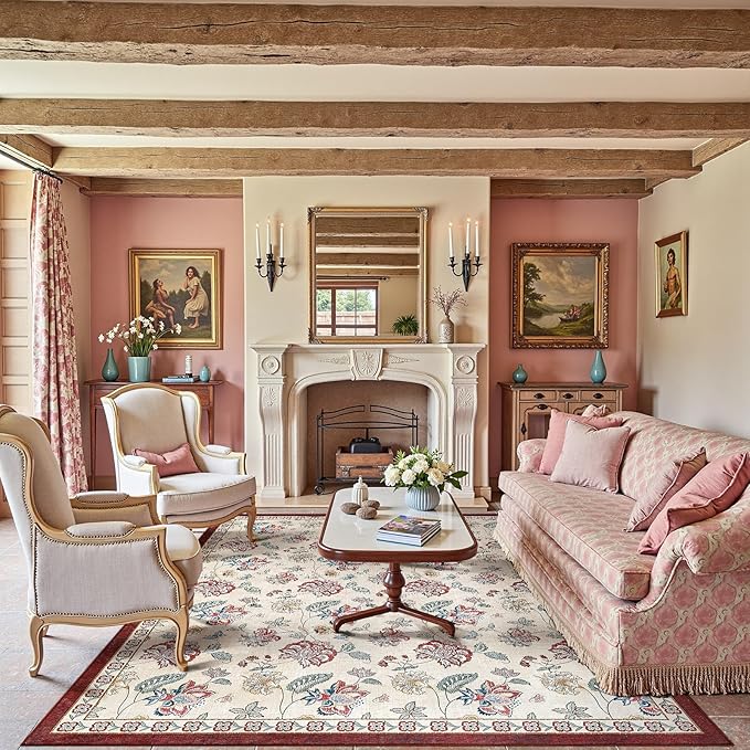 - Floral Vintage Charm: Layers of lush botanical florals framed by an ornate border bring timeless American vintage elegance to your home. The soft cream base and warm floral tones create a welcoming mood—like stepping into a sunlit garden filled with stories.