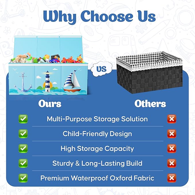 - Multi-Functional Kids Toy Storage Organizer: Toy organizer boxes are perfect for organizing your stuff, great for books, magazines, clothes, blankets, office supplies, decorations, whether in the living room, bedroom, utility room, children's room, nursery, dormitory, apartment, or even the hallway, this large toy chest is the perfect solution for organizing your kids' toys
