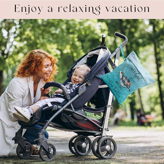 Waterproof Wet Bag for Swimsuit, Travel Beach Wet Dry Bag, Hidden Zipper Reusable Baby turtle Wet Bags, for Travel Beach Wet Swimsuits Toiletries Diapers Dirty Gym Clothes Laundry Bag