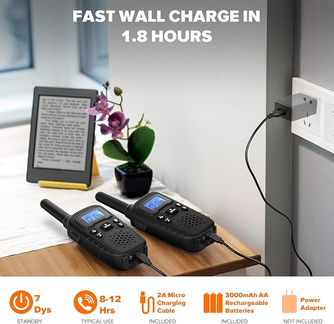 - UNLIMITED COMMUNICATION TIME — The rechargeable walkie talkie supports micro USB charging. You can charge them indoors, on the road, and even camping and hiking, and you do not need to pay for batteries, again and again, saving stress and money for you.
