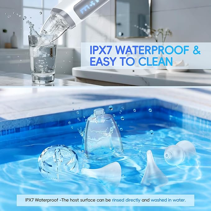 - SAFE & GENTLE – Pediatrician-Backed Design,Crafted with your baby's delicate nose in mind, our aspirator features a patented protection mode that automatically stops operation if the suction port is fully blocked. Equipped with 3 food-grade silicone tips, its soft, flexible material ensures a comfortable experience without irritation.