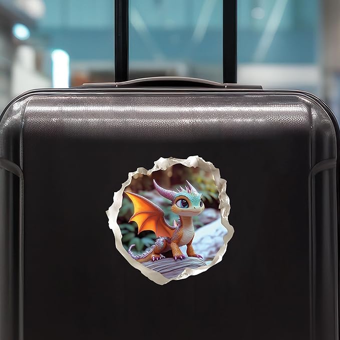 Baby Dragon 3D Wall Decal – Cute Fantasy Sticker with Torn Wall Effect – 4.7W x 4.5H inches