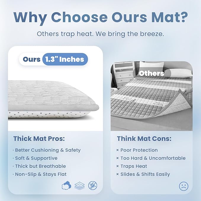 - đĄď¸ Safe Materials â Worry-Free Use Made with child-safe, tested materials that are gentle on skin and free from harsh substances. The non-slip, honeycomb-textured backing keeps the rug securely in place and provides a subtle massage-like sensation for added daily comfort.