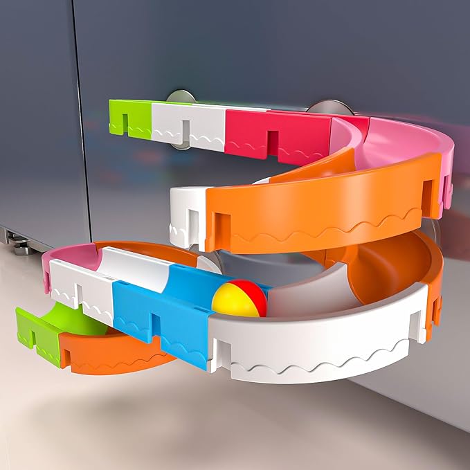 - 【Durable & Safe】Made with stainless steel ball and ABS tracks, these bath toys for toddlers 2-4. Kids can design 10+ track layouts and explore creativity in the tub