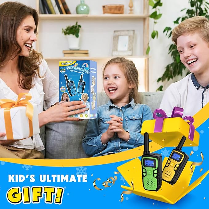 - 【Nature-Inspired Gift for Curious Kids Ages 4–10】:The green and yellow color combo makes this 2-pack walkie talkie a perfect gift for kids who love nature, camping, or imaginative play in the backyard.