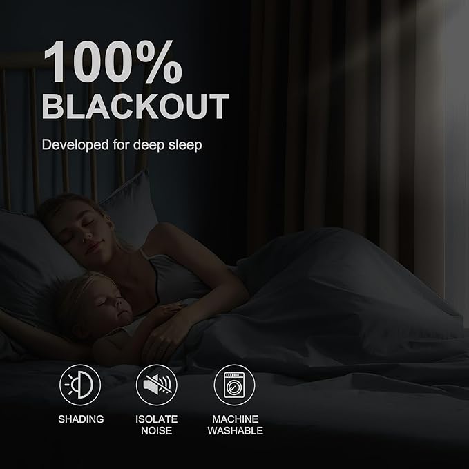 - 100% BLACKOUT: These curtains are manufactured in a STANDARD 100 certified by the OEKO TEX factory. The curtains can block out 100% bright sunlight and UV ray, bring you a full room darkening environment for good night sleep, afternoon nap and weekend lie-ins.