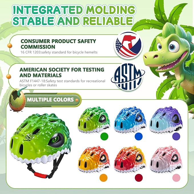- 【7-IN-1 MULTIFUNCTIONAL PROTECTIVE GEAR SET】The toddler helmet set includes 1 3D Adjustable helmet, 2 knee pads, 2 elbow pads, 2 wrist pads, 1 bicycle bell, 1 helmet lining. The unique animal appearance of the helmet easily wins the love of children, and you no longer have to worry about your child not liking to wear a helmet.