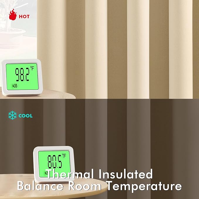 - Energy Saving: The thermal-insulated fabric keeps heat out in summer and retains warmth in winter, reducing your reliance on AC/heating and lowering energy costs by up to 15%. They are perfect for living rooms, bedrooms, patios, villas and offices