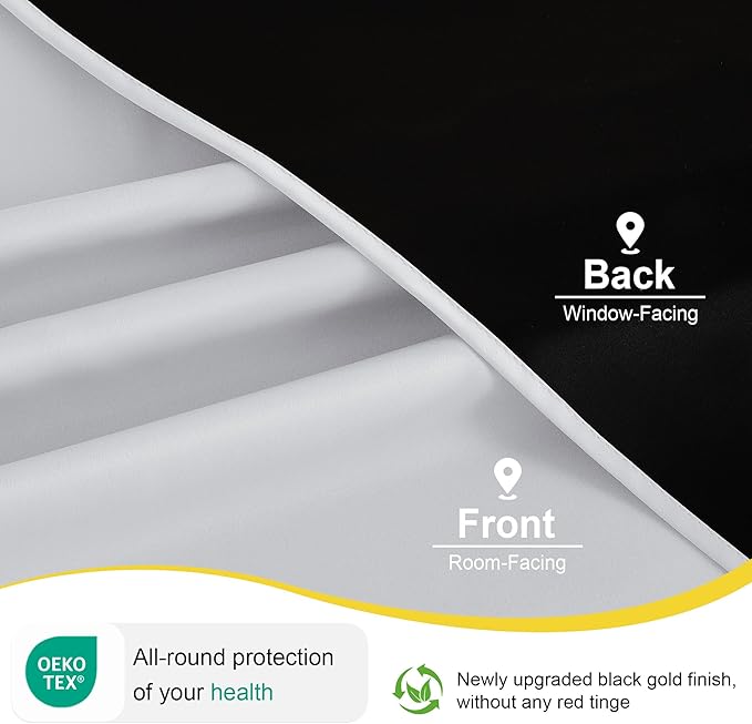 - 100% BLACKOUT: These curtains are manufactured in a STANDARD 100 certified by the OEKO TEX factory. The curtains can block out 100% bright sunlight and UV ray, bring you a full room darkening environment for good night sleep, afternoon nap and weekend lie-ins.