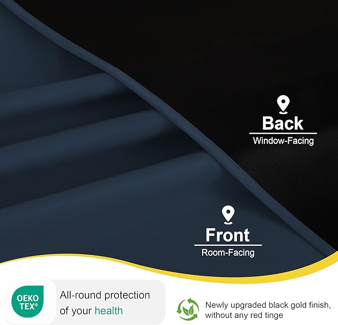 - 100% BLACKOUT: These curtains are manufactured in a STANDARD 100 certified by the OEKO TEX factory. The curtains can block out 100% bright sunlight and UV ray, bring you a full room darkening environment for good night sleep, afternoon nap and weekend lie-ins.