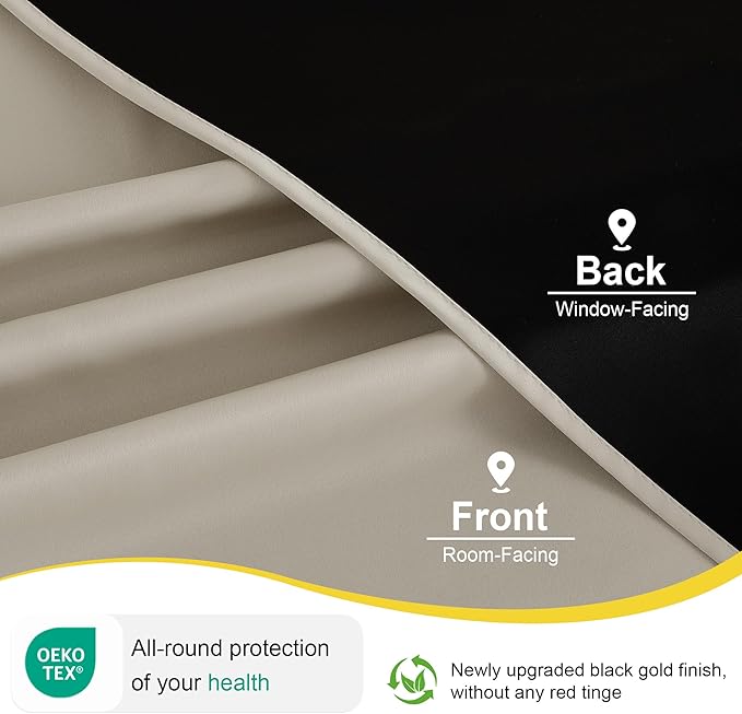 - 100% BLACKOUT: These curtains are manufactured in a STANDARD 100 certified by the OEKO TEX factory. The curtains can block out 100% bright sunlight and UV ray, bring you a full room darkening environment for good night sleep, afternoon nap and weekend lie-ins.