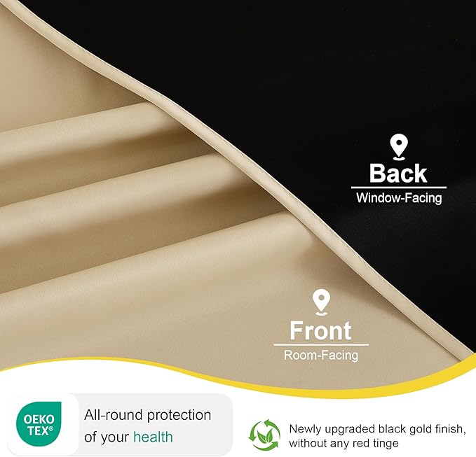 - 100% BLACKOUT: These curtains are manufactured in a STANDARD 100 certified by the OEKO TEX factory. The curtains can block out 100% bright sunlight and UV ray, bring you a full room darkening environment for good night sleep, afternoon nap and weekend lie-ins.