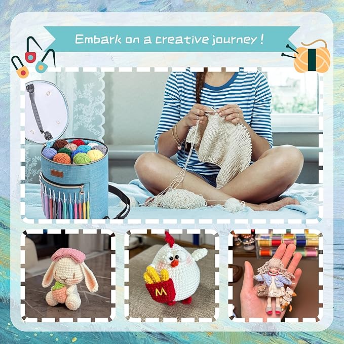 - 【MultI-Functional】Storage Bag: The crochet bag is made of study material free of bad or chemical smells. It features multiple compartment, 14 transparent crochet hooks pockets, 1 pocket for guide book, 3 pockets for knitting needles,dedicated yarn slots to neatly store hooks, yarn balls, scissors, and tools of all sizes.