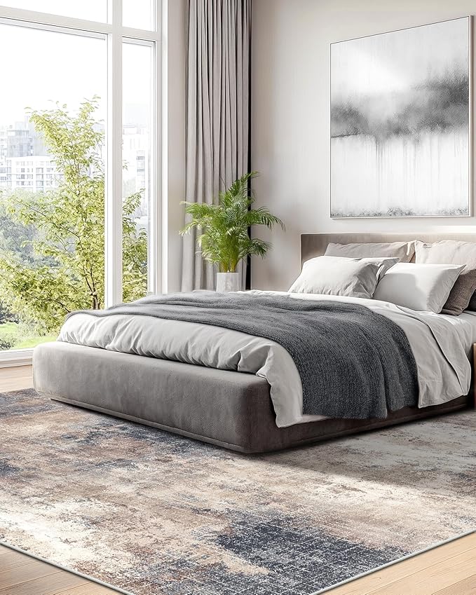 - 【Modern Abstract Design】This 9x12 area rug features an irregular, abstract pattern that blends complementary shades in a striking way to create texture & feeling. Its unique design brings personality & flair to your space, enhancing the overall aesthetic of your home.