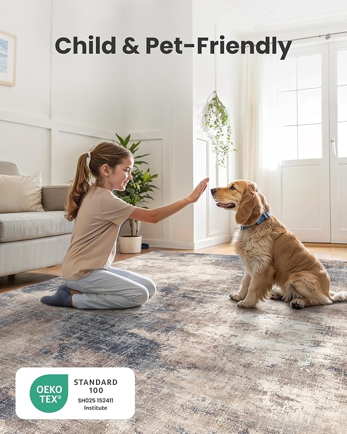 - 【Durable and Easy to Clean】This living room rug features a 0.24″ low-pile design with double-stitched edges for durability and easy maintenance. It’s easy to clean with a standard vacuum or robotic vacuum. For a deeper clean, this rug is machine washable. Ideal for high-traffic areas.