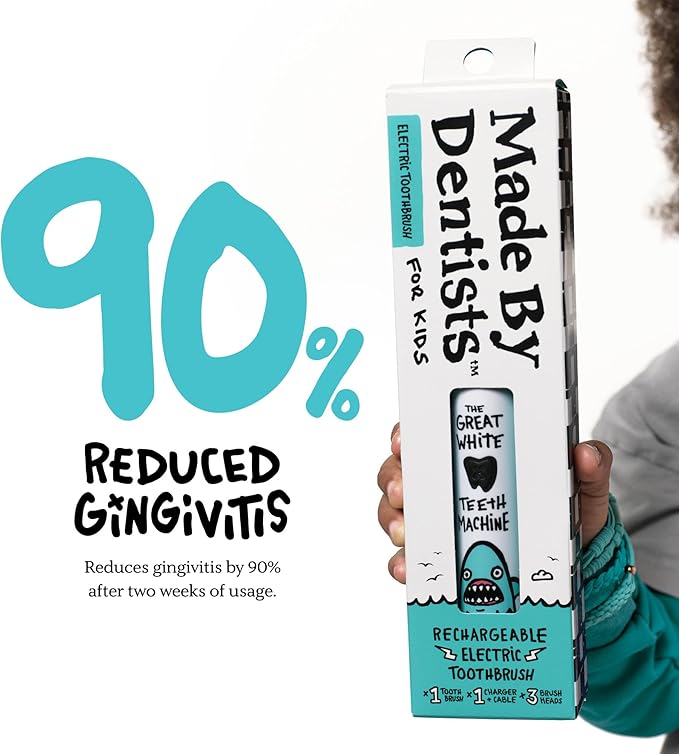 - Shark-Inspired Design – Let your little one dive into brushing time with a playful shark-themed best kids electric toothbrush, making oral care fun! Gently cleans little teeth to ensure their bite is extra white.