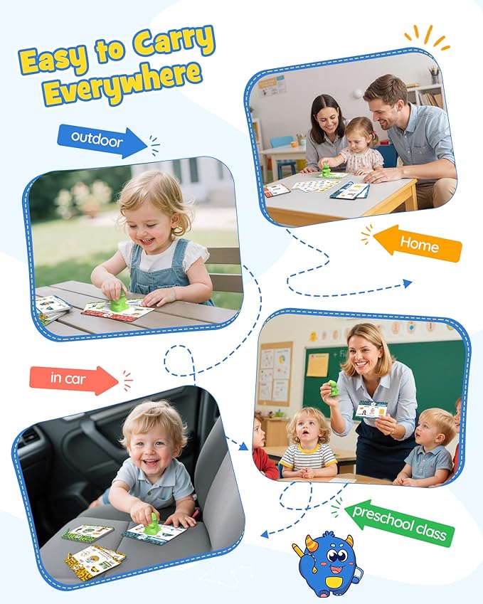 - [Easy to carry]This toddler learning flash card set can last up to 5 hours without the need for continuous charging! The learning cards are made from thick double copper paper that won't bend or tear easily. You can take it anywhere — whether it's on a family vacation or just a quick outing. It's the ultimate long-lasting, easy to use learning tool for your little ones!