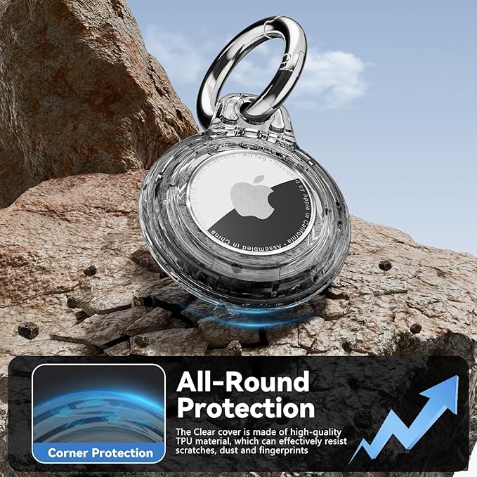 - Durable Material: This AirTags Keychain holder is made of a high-performance PC shell and an embedded TPU clear cover, providing 360° protection for your AirTags; It can protect the air tag equipment from falling from a height of 10 feet, effectively preventing drops, shocks and scratches