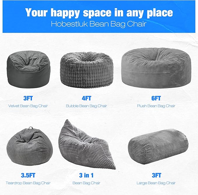 - Strong Support: Our large bean bag is filled with high-density memory foam. This not only provides you with strong support but also allows you to fully experience the extreme comfort of sinking into Hobestluk bean bag chair.