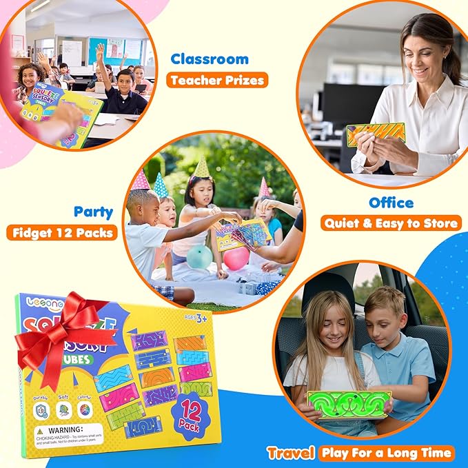 - Teacher-Approved Tools for Classroom Rewards & Treasure Boxes: Safe, durable, and silent, our stress relief toys are loved by teachers and parents alike. Use them as school treasure box prizes, birthday favors, or quiet desk companions for reducing classroom anxiety and fidgeting. 12Pack and Variety of Mazes designs fidget toys packs is also ideal for party favors