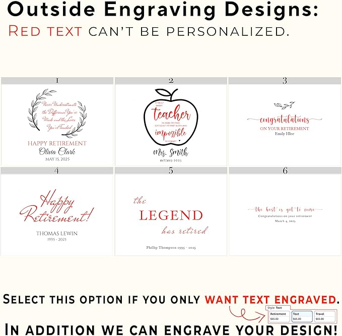 - Customizable: this bamboo retirement memory box can be engraved with various designs offered adding the name, retired date to make it unique. We’ll use the font style showcased in the photos. Additionally, it can be engraved inside(different font options), on the other lid's side, to create a surprise message for the recipient