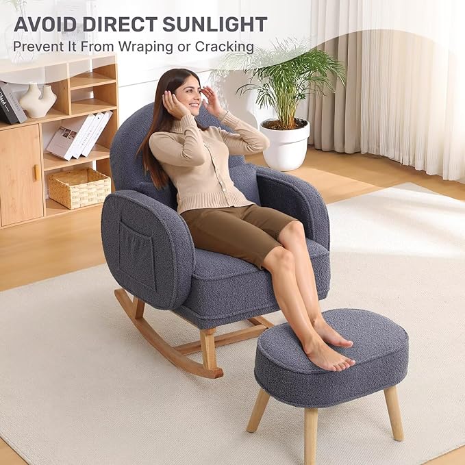 - DURABLE & EASY MAINTENANCE: Made from high-quality velvet, this rocker chair boasts excellent breathability and is resistant to wear and pilling, providing long-lasting durability. The wrinkle-resistant surface makes cleaning a breeze, so you can relax and enjoy your chair without any hassle