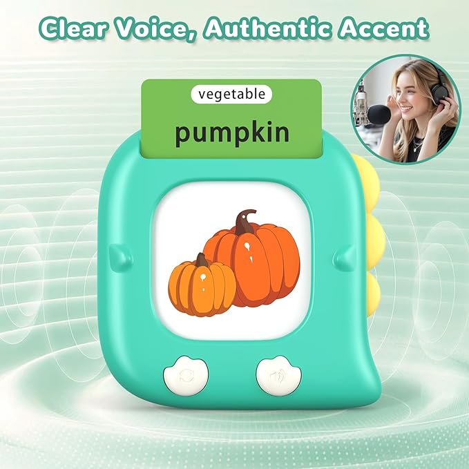 - [ Easy to Use ] Turn on the switch, put the card into the card reader’s slot, and the card reader will pronounce the words. And you can repeatedly read and learn again and again by pressing the repeat button. It can be used independently by toddlers ages 1 and up.