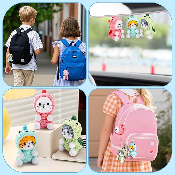 - 【3 Crochet Animal Kits】The crochet starter kit could crochet 3 cute cats dressed as dinosaur, designed for animal lovers and loved by many. It will gently heal your heart as you crochet. The warm finished product can be used as a decoration and placed in the study room, living room, bedroom lamp, etc