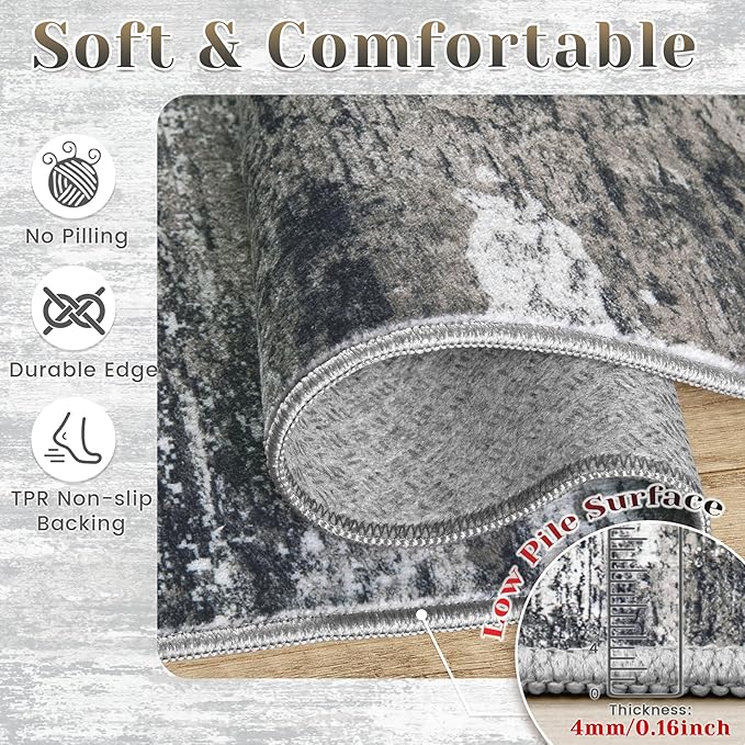 - 【Kids & Pet Friendly】Made from high-quality, fade-resistant fabric, this 6x9 rug is safe for children to touch and play on. Its 0.16-inch low-pile design resists shedding, while pet hair and dander don’t cling easily. Stains and dirt wipe away effortlessly, making it perfect for relaxing with your little ones and pets.