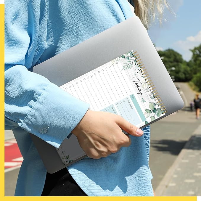 - Spiral Coil Design: This planner features a sturdy spiral coil binding, which is easy to flip open and lays flat for a comfortable writing experience. The convenient tear-off design makes it a breeze to remove completed pages without damaging the rest of your notebook—perfect for quick updates and a fresh start each day.