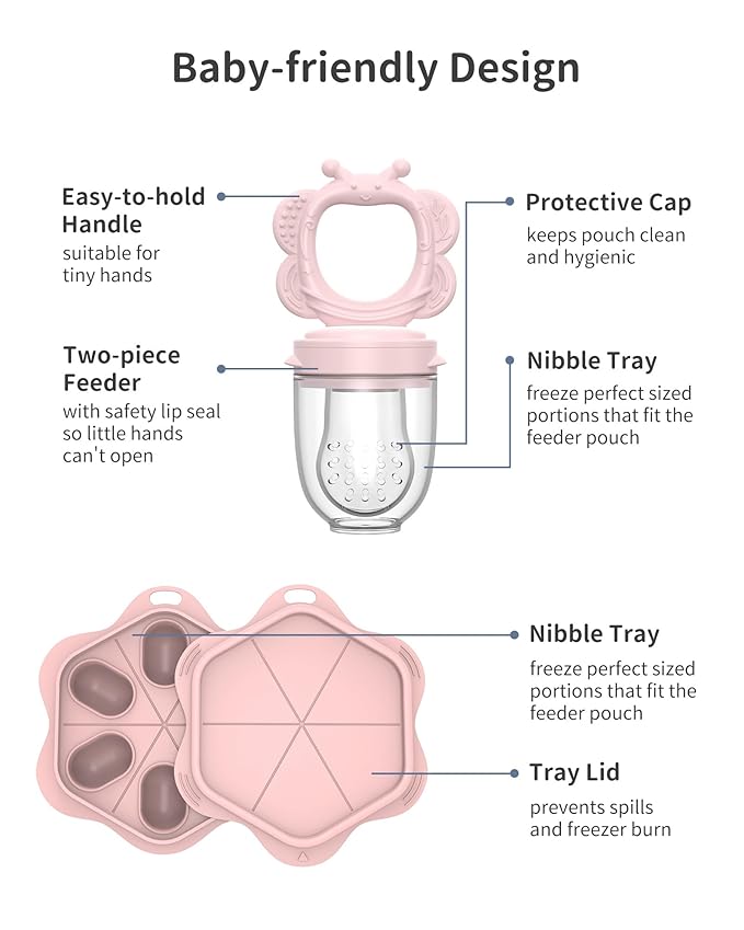 - Food Grade Silicone: Food feeder and freezer tray are made of 100% food-grade silicone, BPA, PVC and phthalate free, making sure them is safe for baby food storage and feeding. They also can used in a freezer, microwave, steamer and dishwasher safely.