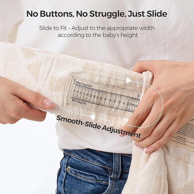 - Perfectly Fits from Birth: Unique visual adjustment scale inside the waistband helps you adjust the width for your baby according to baby's height. Achieve a safe fit and Ergonomic natural "M" position while ensuring baby's healthy hip and spinal development with proper adjustments to accommodate your baby's size.