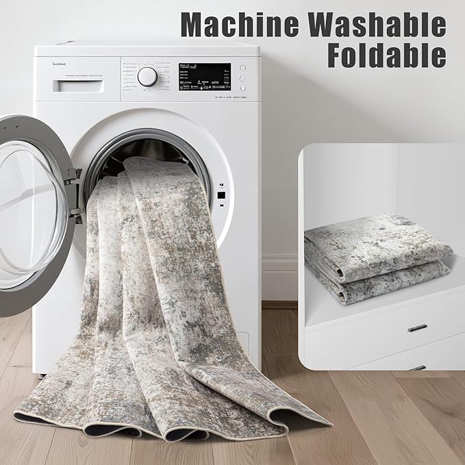 - Machine Washable Rug: Say goodbye to hidden dirt and cleaning hassles. The low soft pile of this 9x12 rug keeps most dirt on the surface, making it easy to clean with a carpet brush.The added bonus of it being machine washable makes it a breeze to maintain and saves you time. 6'x9 'and above are recommended to use nearby commercial laundry rooms
