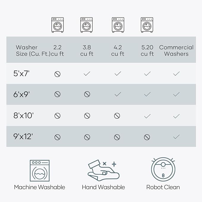 - Machine Washable Rug: This low-pile area rug resists pet hair and debris and is easy to clean—simply vacuum, sweep, or wipe between machine washes, saving you time and effort. Care Tips: Cold gentle cycle. Mild detergent only. Tumble dry low or air dry