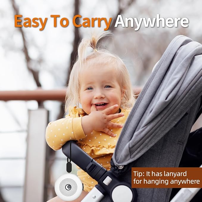 - 【Compact Design & Detachable Strap】Featuring intuitive button controls and a simple interface, this sleep sound machine is easy to use for everyone—elders, children, or first-time users. Lightweight and portable, it includes a convenient carrying strap for easy attachment to strollers, car seats, or hotel headboards. Create a calming soundscape anytime, anywhere—for you or your baby.