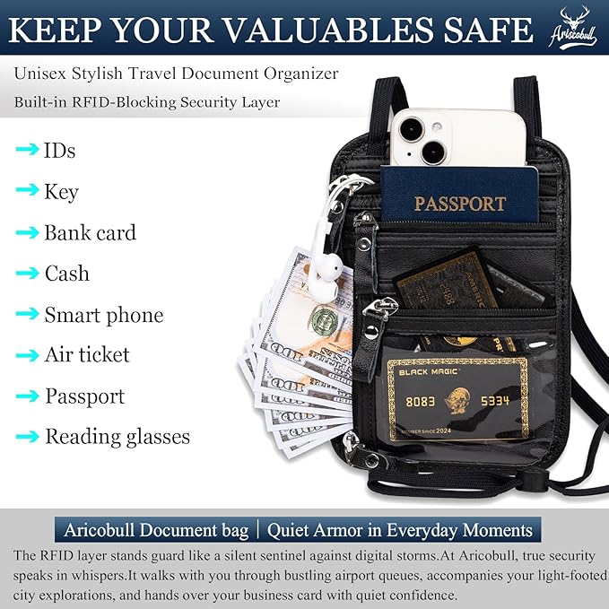 - Discreet Anti-Theft Design – Our Ariscobull Neck Wallet Makes It Super Easy To Add Or Remove Items, Keep Valuables Hidden Under Clothing, Perfect For Travel And Crowded Areas.