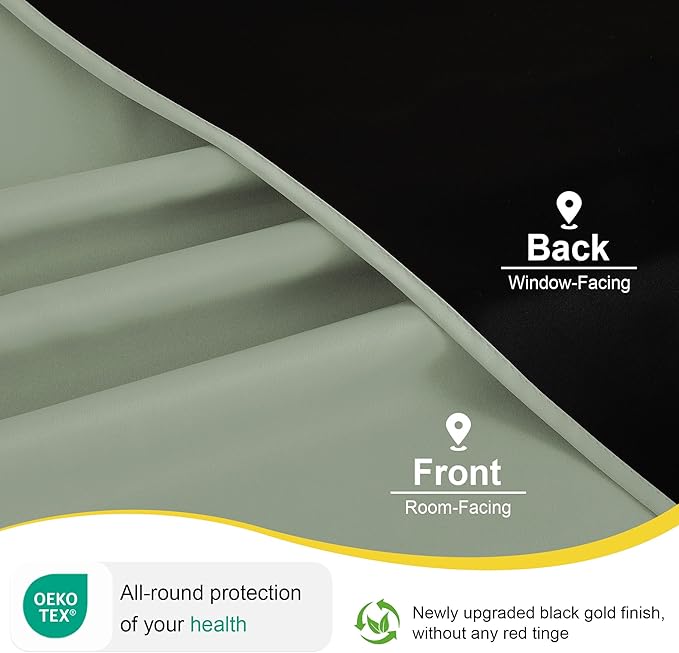 - 100% BLACKOUT: These curtains are manufactured in a STANDARD 100 certified by the OEKO TEX factory. The curtains can block out 100% bright sunlight and UV ray, bring you a full room darkening environment for good night sleep, afternoon nap and weekend lie-ins.