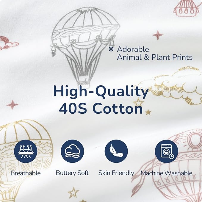 Baby Sleep Sack 12-18 Months, Cotton Detachable Long Sleeve Sleep Sack, 1.0 Tog Toddler Sleeping Sack with Temperature Strips, 2-Way Zipper Wearable Blankets for Newborns, Hot Air Balloon