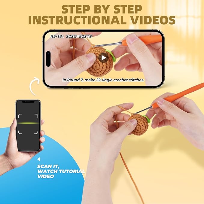 - 【3+ Hours of Video Tutorials】Simple, immersive, and beginner-friendly. Follow the entire plush crochet process with clear narration and expert guidance. Videos include chapter markers and playback speed controls to learn at your own pace. Ideal for first-time crocheters!