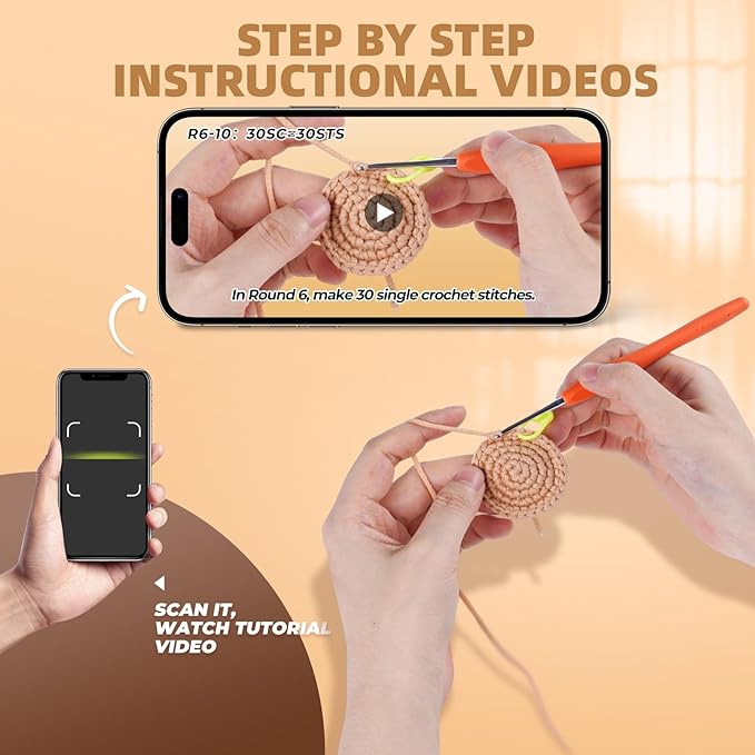 - 【3+ Hours of Video Tutorials】Simple, immersive, and beginner-friendly. Follow the entire plush crochet process with clear narration and expert guidance. Videos include chapter markers and playback speed controls to learn at your own pace. Ideal for first-time crocheters!