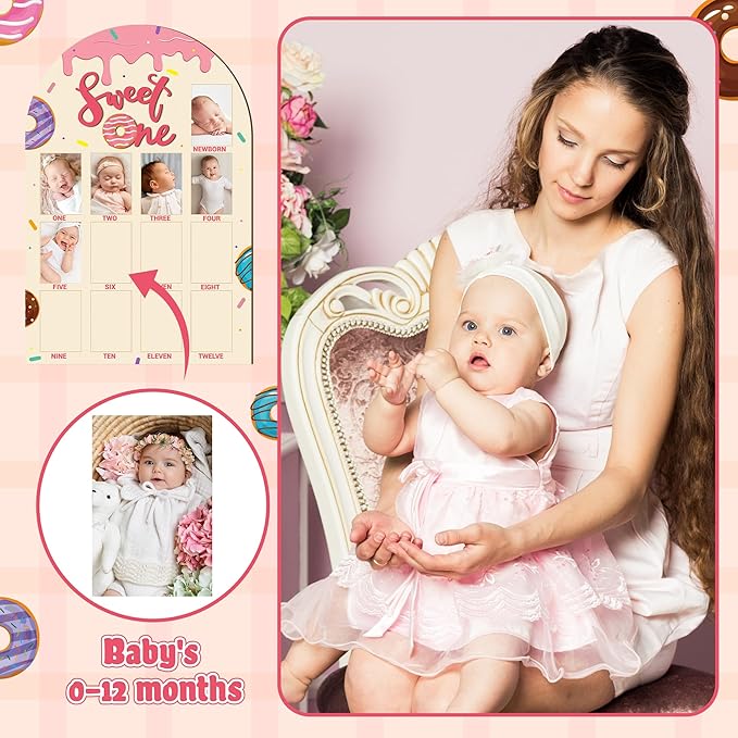 - Sweet Display Wood Board: Our 1st Birthday Frame comes with hanging hooks and adhesive points, making it easy for you to mount and decorate. Crafted from durable, premium wood, it's designed for longevity. Adorned with your baby's photo, this sweet-themed frame will undoubtedly become a stunning focal point at your child's first birthday celebration.