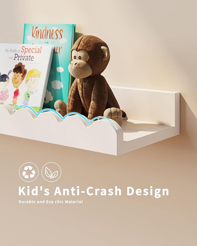 Nursery Book Shelves, 4-Pack White Floating Shelves for Wall Kids, Scalloped Shelves, Wall Book Shelves for Bedroom Kids, Toddler Room, Baby Room, Nursery Decor (White, 36 Inches)