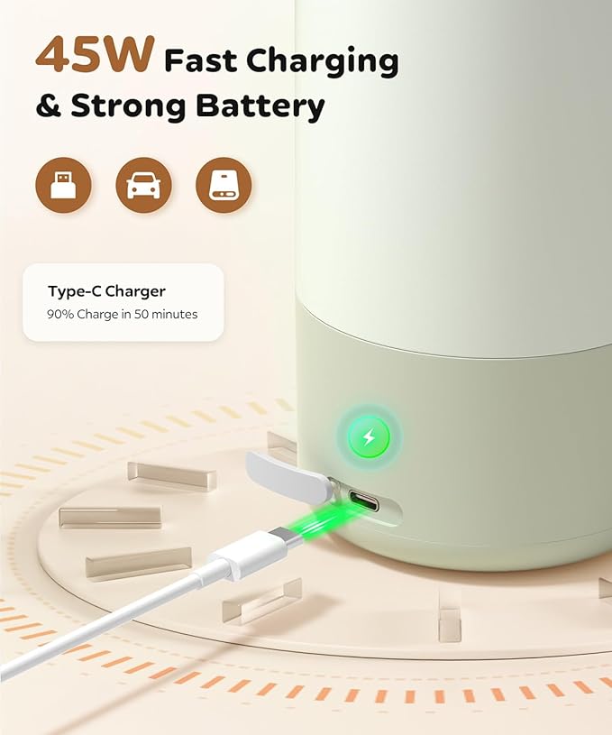 - Fast Charging & Long Battery Life: With 45W fast charging and 14800mAh battery, this milk warmer can be fully charged to 90% in just 1 hour. Perfect for all-day use of this portable milk warmer.