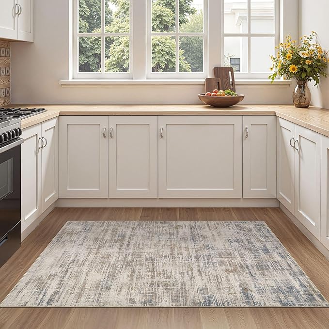 - Neutral Abstract Style: Elegant neutral design lets this rug integrate seamlessly into any space. It enhances room ambiance and adds refined elegance to your home. Perfect for living rooms, bedrooms, dining rooms, studies, offices, playrooms and nurseries