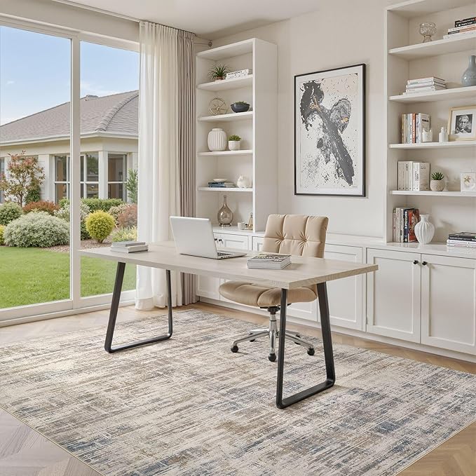 - Neutral Abstract Style: Elegant neutral design lets this rug integrate seamlessly into any space. It enhances room ambiance and adds refined elegance to your home. Perfect for living rooms, bedrooms, dining rooms, studies, offices, playrooms and nurseries