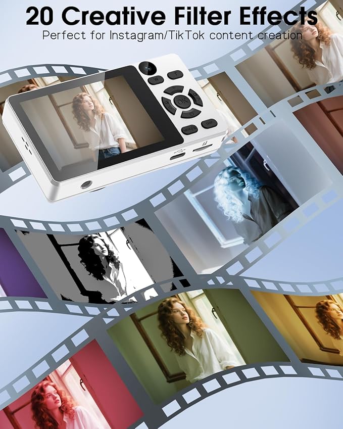 - Shoot Storytelling Images With Ease: This camera's portrait effect is professionally turned and focuses on portrait and close-up photography, perfect for shooting vintage atmosphere, “French oil painting” style photos in bright scenes, and easy to create popular socal media photos and videos without any retouching.20 filter styles, fill light, more fun and creativity waiting for you to explore!