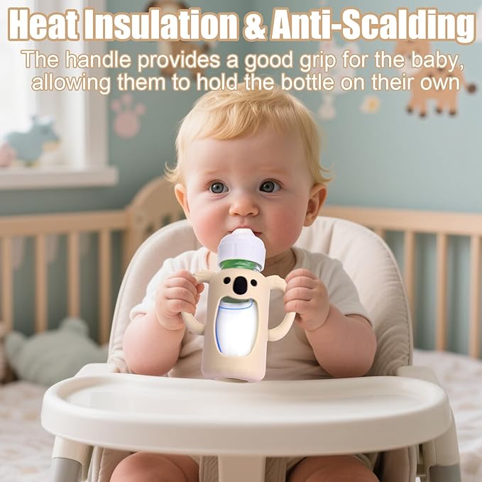 - Thermal Insulation & Maintain Liquid Temperature:Silicone bottle protectors have good heat insulation properties, which can effectively prevent the hot water in the bottle from scalding the baby's little hands or skin. Even when the bottle is filled with high temperature liquid, the sleeve can keep the external temperature moderate, convenient for parents and babies to use safely