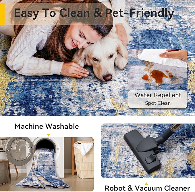 - Tides Series โ Effortless style that flows with your life.This modern machine-washable non-slip rug features reinforced edges and a low-pile design that resists dirt. Its water-repellent surface makes spills easy to clean - liquids bead up for quick wiping. Simply machine wash in cold water (no bleach) to refresh. The non-slip backing keeps it securely in place. A perfect blend of function and contemporary design for active homes.
